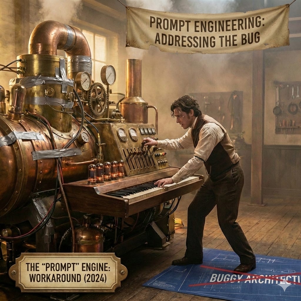 If you didn’t shift the gears (prompts) at the exact right RPM, the engine would stall (hallucinate) or the car would veer off a cliff (refuse to answer). We convinced ourselves that knowing how to shift those gears—knowing exactly which magic words to type—was a career.